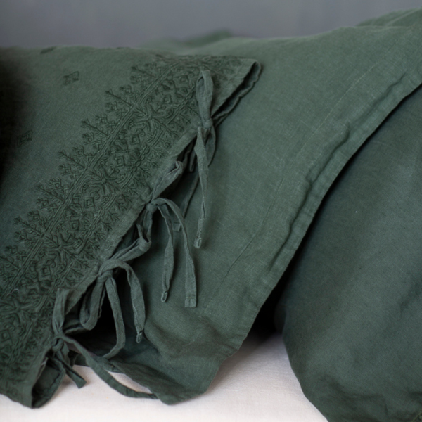 ![[allvariants]: Linen pillowcases in eucalyptus with matching sheets with a rumpled duvet in midnight blue embroidered linen - cropped three-quarter angle.](http://shop.bellanotteoverstock.com/cdn/shop/files/Linen_Pillowcase_Bella_Notte_10_178452b5-ab7f-417e-a272-e46e251de825.jpg?v=1698687100&width=1200)